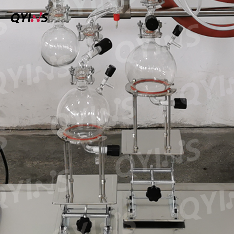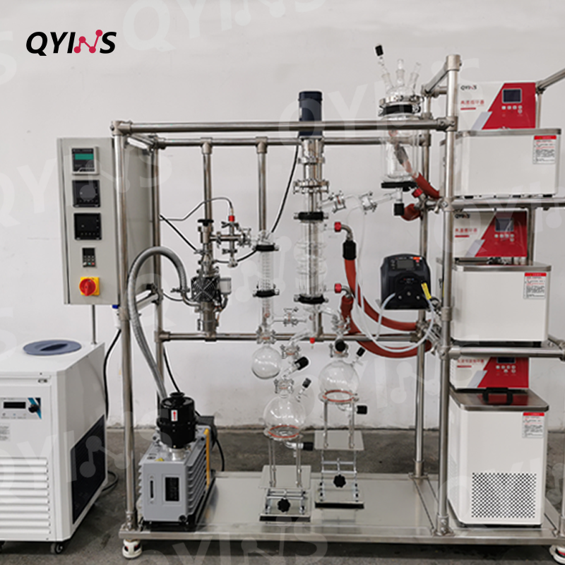 玻璃分子蒸餾 QYMD-80D(有效蒸發(fā)面積0.1㎡,外置兩根冷凝器,配套兩臺低溫泵) 應用領域 :日用化工及化妝品、醫(yī)藥、添加劑、塑料、農(nóng)藥及表面活性劑-礦物油、工業(yè)大麻(CBD) 加工物料:氨基酸酯葡萄糖衍生物、茄尼醇、萜烯酯等。