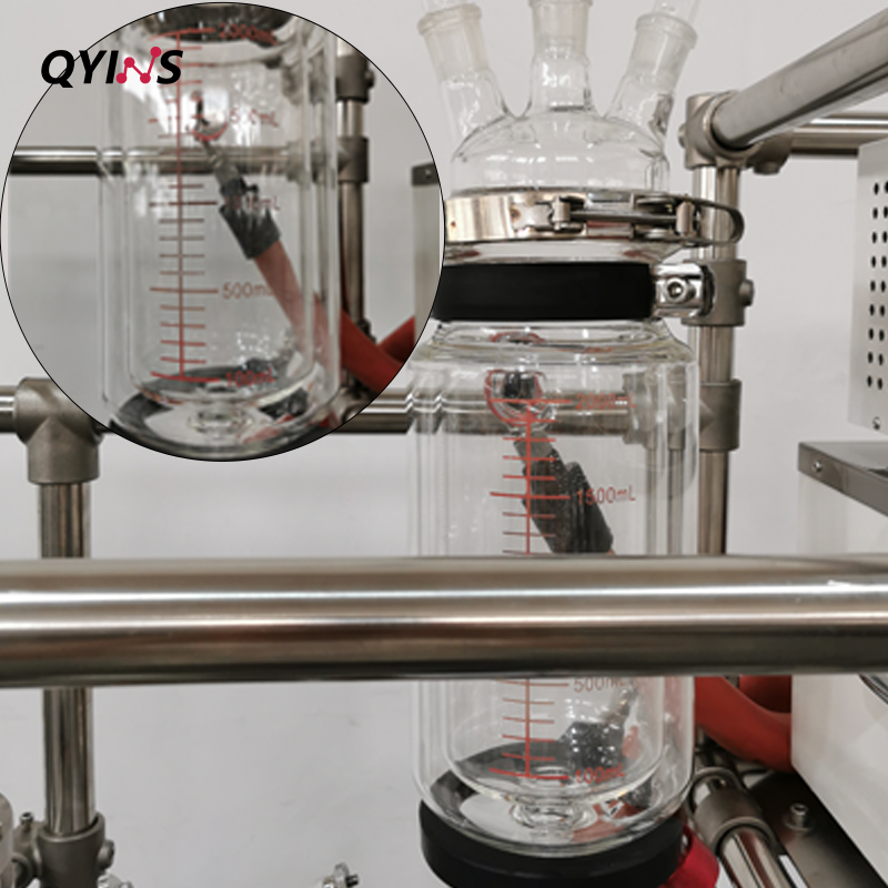 高透明度,內置蛇形玻璃盤管冷凝器配套316不銹鋼攪拌框,結合四氟刮條