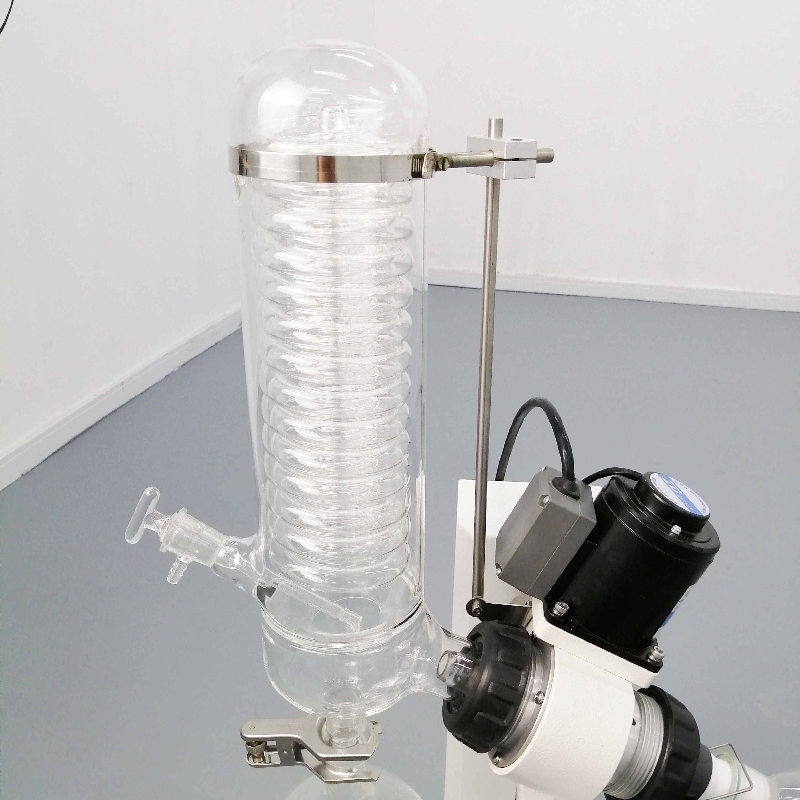 本款實驗級小旋蒸,液晶屏幕數顯溫度和轉速,操作簡便;彈力升降旋轉瓶,省力耐用;立式多層蛇形冷凝盤管,冷凝效果好。